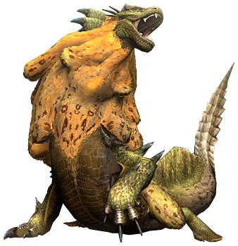 海竜目/海竜亜目/綿毛竜下目/ロアル科 全長:約 1545.2 cm/全高:約 457.1 cm/脚の大きさ:約 103.6 cm(前脚) (『ハンター大全3』)