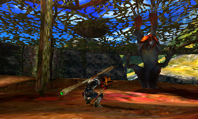 また怒り状態の時は大きな耳で顔を塞ぎ、相手を威嚇するのが特徴だ。長い爪を利用して、ツタや枝にぶら下がりながら攻撃をしかける。