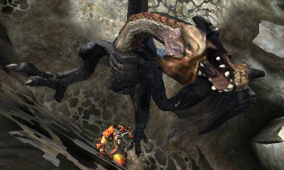毒液を吐くゲリョス。斜面に着弾した毒液が流れ落ちているようにも見えるが……。