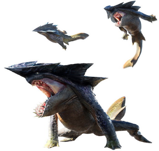 両生種のモンスター。氷海の過酷な環境で一刻も早く成長する必要があり、獲物を見つけると一斉に襲い掛かって大量の肉や体液を摂取しようとする。養分を得たスクアギルは急激に体を膨らませ成長する。