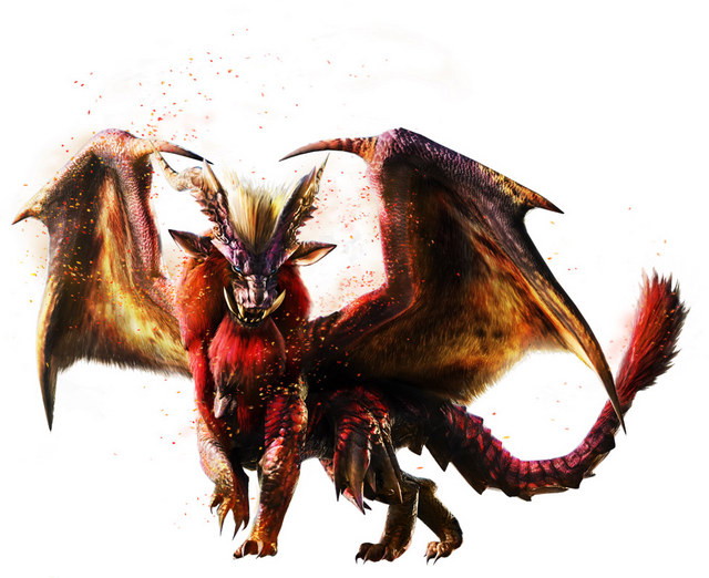 高温地帯にも耐えうる強靭な外殻を持ち、その体躯から立ち昇る焔は、近づく生物を拒むかのように容赦なく降り注ぐ。縄張りを侵すハンターに、今にも襲いかかろうとするテオ・テスカトル。