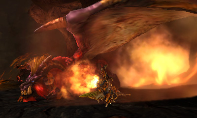 地上や中空状態でも容赦なく炎ブレスを放射する。射程距離も長く、非常に注意しなければならない攻撃だ。
