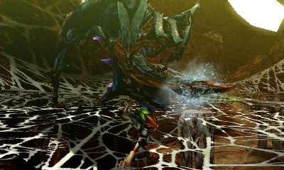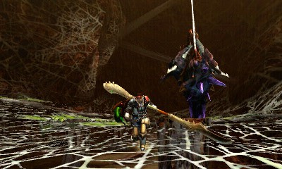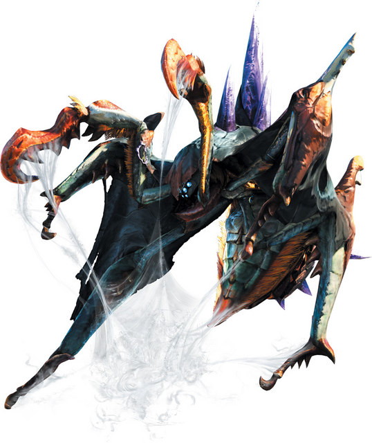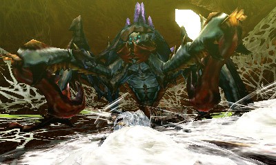 鋏角種 に属するモンスター。巣を張り、その裏表を利用した攻撃と、多彩な状態異常を使った攻撃が特徴的。頭部には<鋏角>と呼ばれる大顎状の器官を隠し持っている。