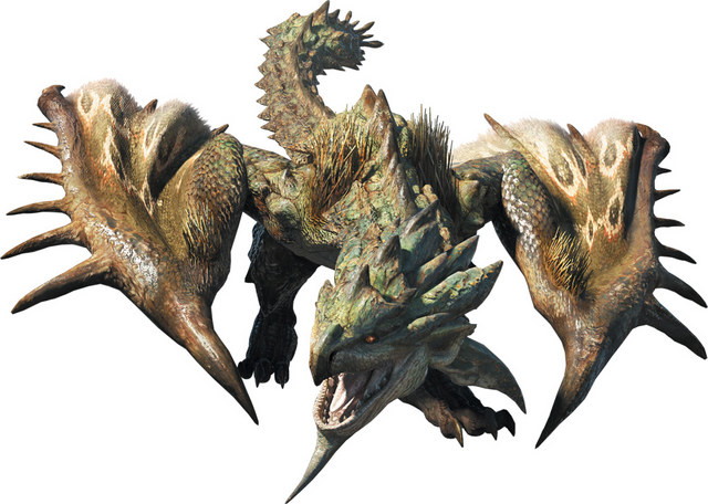 毒を含む尻尾から繰り出すサマーソルト尻尾攻撃は非常に強力。地上での行動に長けたリオレイア。猛突進で迫り、体当たり攻撃を仕掛ける。