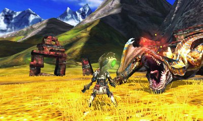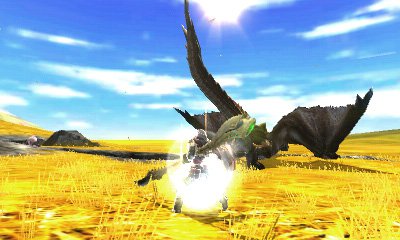 猟虫でモンスターから強化エキスを採取! 操虫棍ならではの特殊なアクション。モンスターに印を当てて、猟虫を放つと印めがけて飛んでいく。猟虫がモンスターに攻撃を行うと強化エキスを採取する。