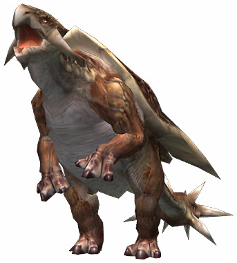 食料となりえるモンスター。ただし外殻は硬く、アプトノスよりも攻撃的なため、簡単にはその肉にありつけない。卵にも価値があり、ギルドでは重宝されている。