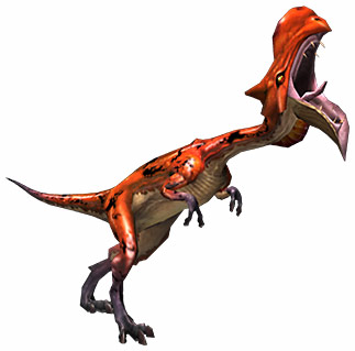 鮮やかな赤色が特徴の鳥竜種。主に亜熱帯で、群れを形成して生息している。喉元の袋に毒液を分泌させ、それを吐きかけることで、獲物の体力を徐々に奪う。