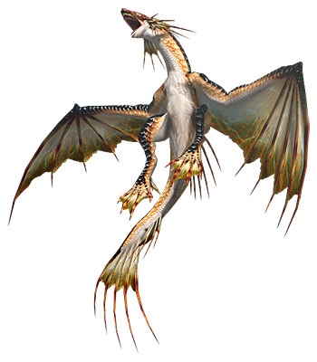 水中に棲息する巨大な飛竜。飛竜に分類されているものの、羽はヒレの様に変態しており飛行する能力はない。魚のような外見に反し、陸地でも活動できる。カエルが好物。