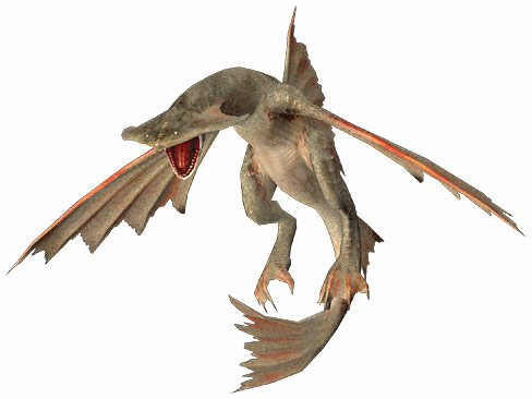 砂漠に群れて生息する飛竜。一見、ガノトトスと似た進化形態をしているが、彼らは砂中に潜り、砂漠を泳ぐ。滅多に地上には姿を出さないが、彼らの聴覚に衝撃をあたえることができれば…。