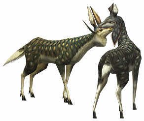 シカのような草食モンスター。臆病ですぐ逃げてしまうためその角は貴重である。食用として狩られる事も多く固くしまった肉質は癖になる歯ごたえ。