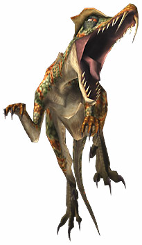 緑と橙の縞模様が特徴の鳥竜種。群れを作って生活する。主に砂漠に生息し、大きく発達した牙が特徴。牙や爪などに持つ麻痺性の毒により、獲物の動きを奪いしとめる。