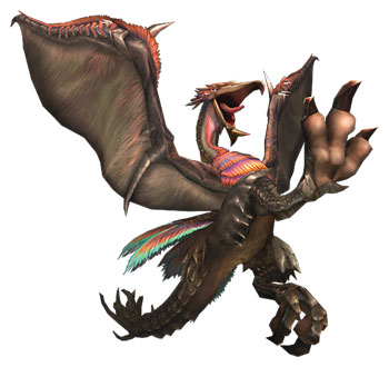 主に樹海で目撃される橙色の毛と美しい尾羽が特徴的な鳥竜。睡眠ガスを吐くことで、天敵や獲物を眠らせて生存を図る極めて臆病な性格の飛竜である。ただし発達した脚部から繰り出される一撃は強烈な威力を持つため油断は禁物である。