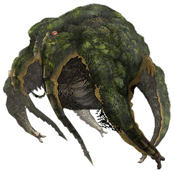 空に浮かぶ巨大な古龍。大地を喰らい、森を一呑みにするといわれ、肥沃な土地を求めて天空をさまよう。その姿はまさしく山の如くで、背には太古の樹木が繁茂している。辺境の古塔に棲むといわれる。