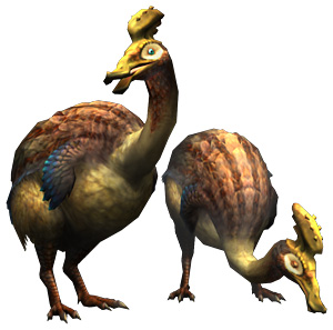 渓流に生息する鳥竜種のモンスター。羽を持つが、小さく退化しており飛ぶ事は出来ない。ユクモ村では、家畜としても親しまれており、その用途は広い。また、大変臆病な性格で、こっそり背後から驚かされると、卵を産み落としてしまう事も。