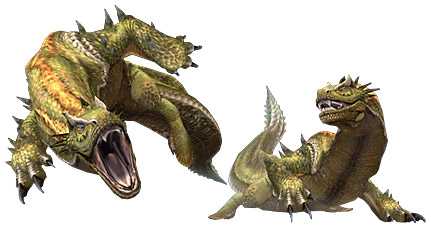 雌の水棲モンスター。ルドロスは大型の雄を中心に完全なハーレムを作る。雄が繁殖のために作ったなわばりに、多数のルドロスが集まってくるのである。なわばりを侵す外敵に対しては非常に攻撃的になるので注意が必要。別名“水生獣”。