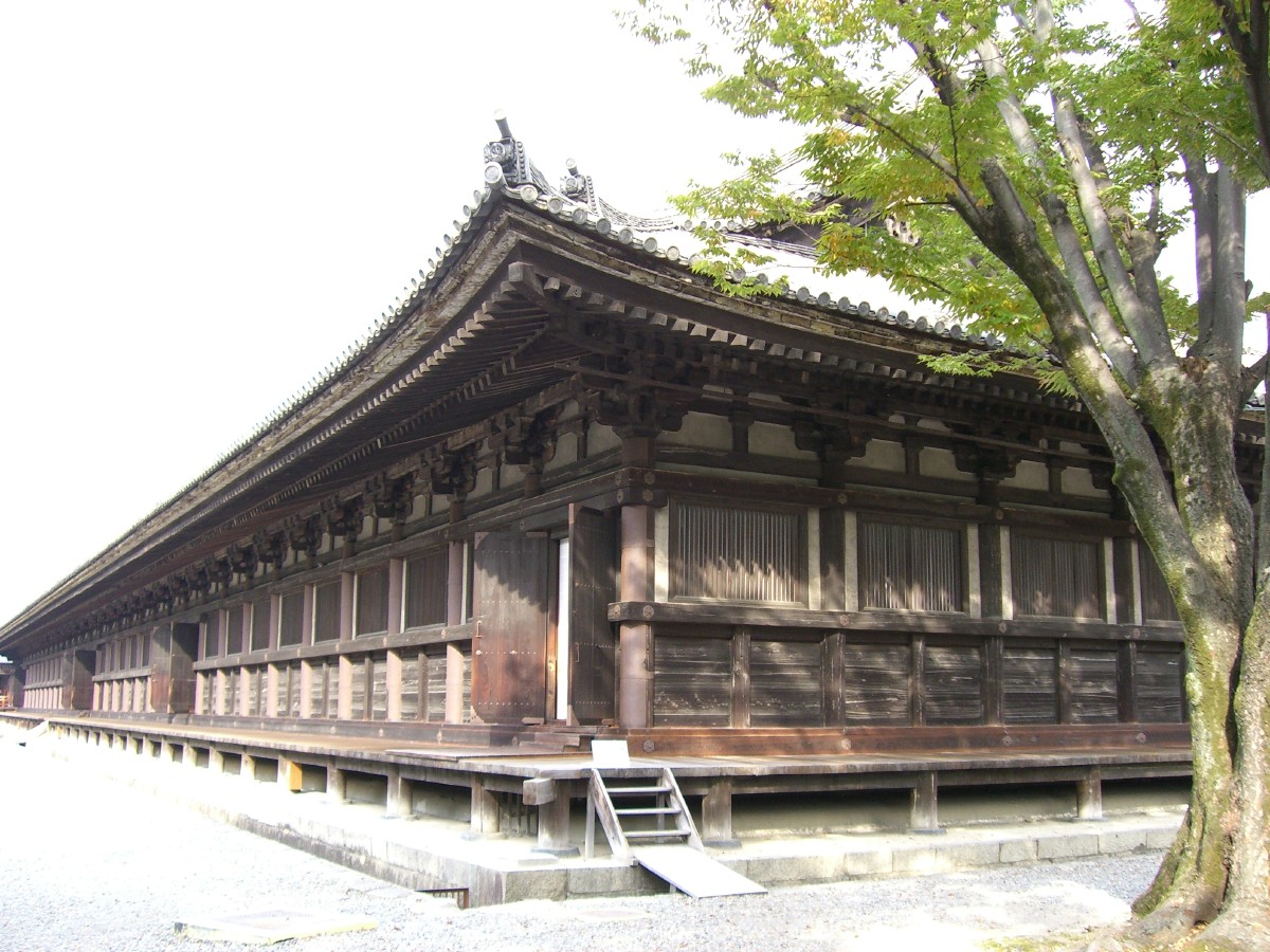 蓮華王院三十三間堂。裏側南より北を望む。