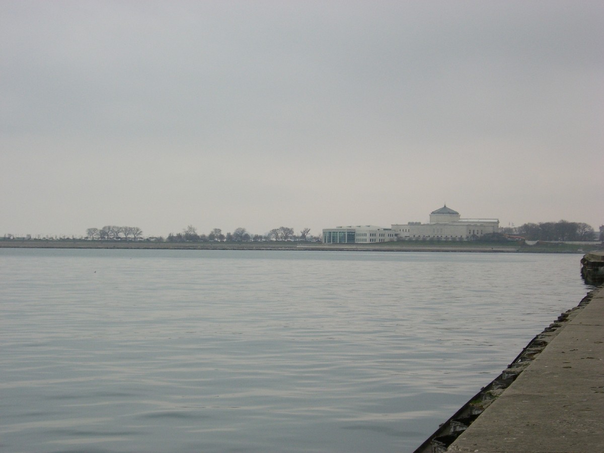 ミシガン湖。向こう岸の建物は水族館。