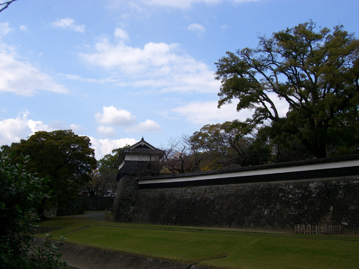 坪井川(城の内堀になっている)沿いの長塀(重要文化財)。
