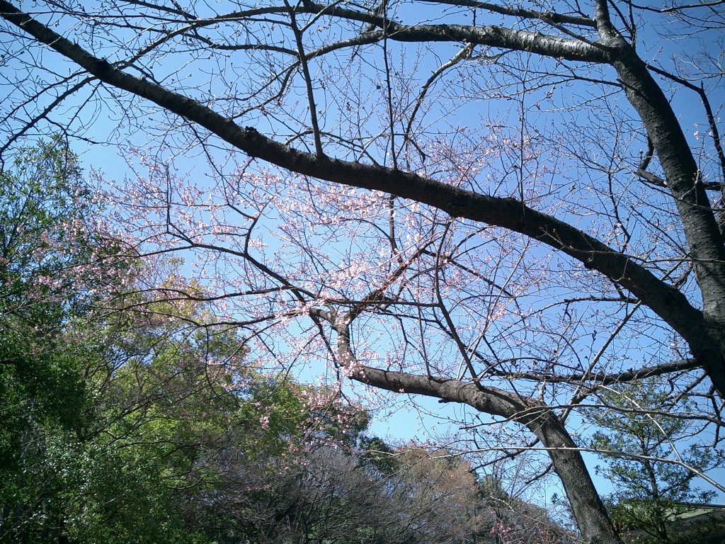 熱田神宮境内。広い敷地は杜になっている。今年一番の桜が咲いていた。