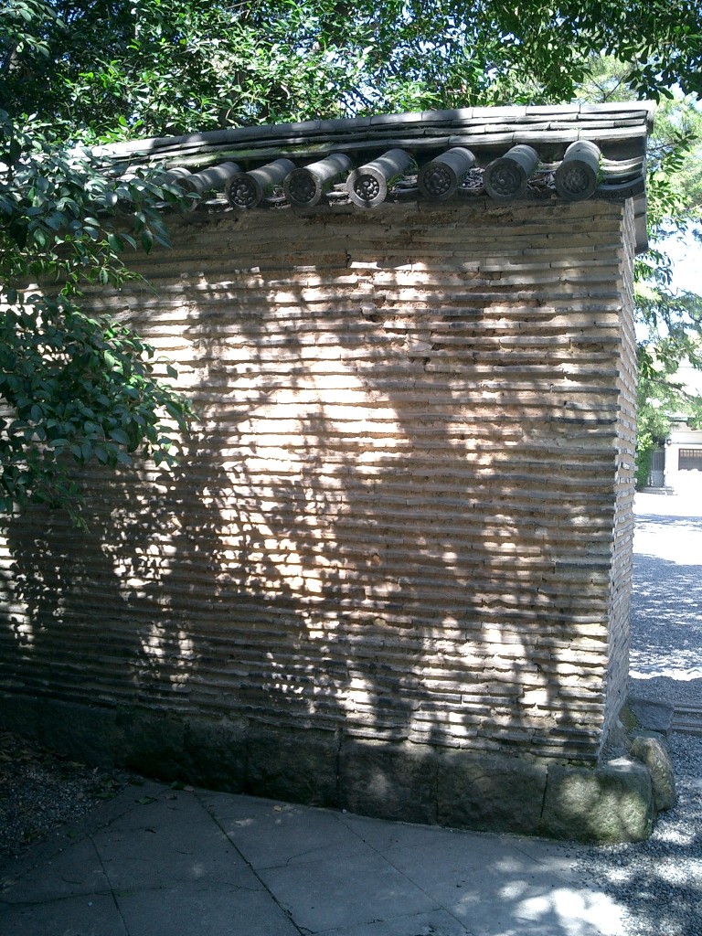 熱田神宮の信長塀。桶狭間合戦時、出陣前の織田信長が熱田神宮に戦勝を祈願したところ、神殿から甲冑の音が聞こえてきたという逸話は有名。今川義元を打ち取った信長が熱田神宮に奉納したのが、この築地塀である。西宮神社の大練塀、三十三間堂の太閤塀とともに日本三大土塀の一つに数えられる。